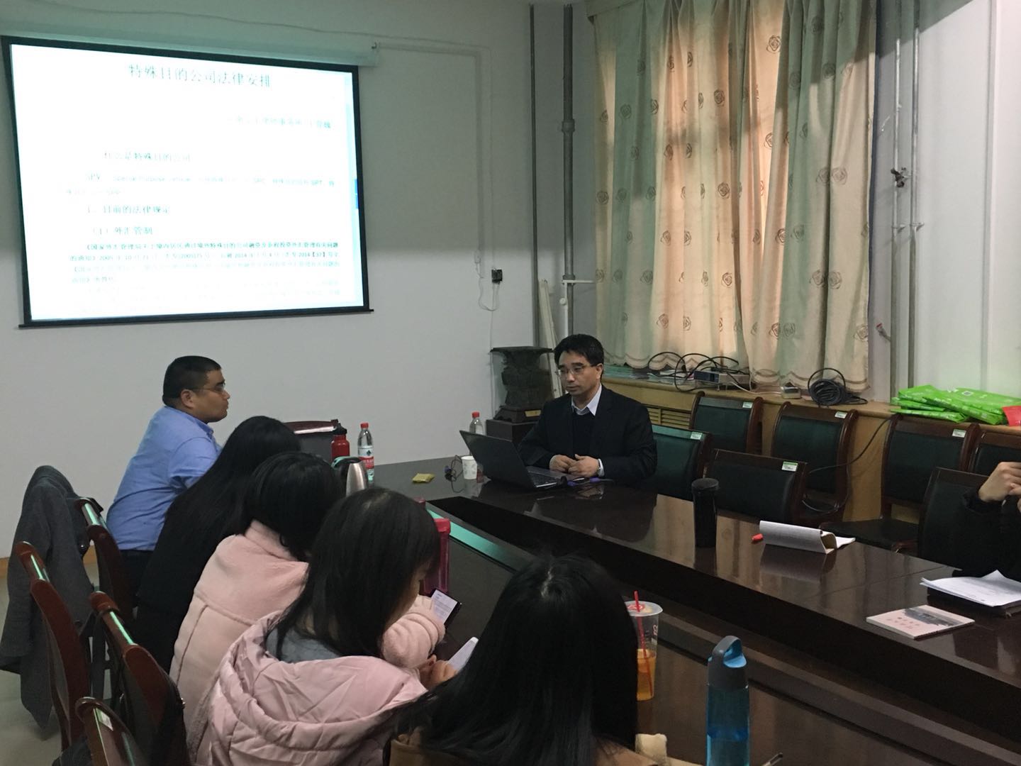 12月28日下午,河南文丰律师事务所合伙人王登巍律师应邀做客英国正版365官方网站,在英国正版365官方网站二楼会议室为公司师生讲授《特殊目的公司法律安排》。讲座由公司民商法学专业樊涛老师主持。