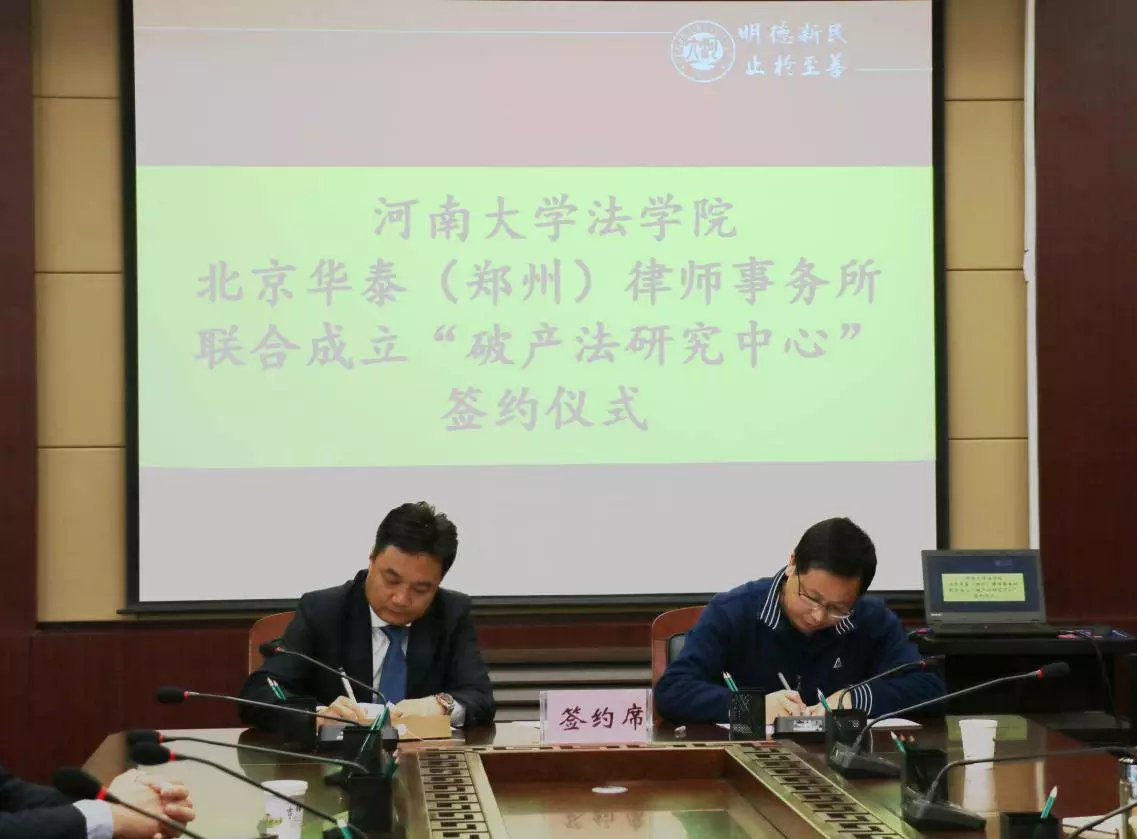 2017年10月20日上午,北京华泰(郑州)律师事务所与英国正版365官方网站在英国正版365官方网站举行了“破产法研究中心”签约仪式,双方合作成立“破产法研究中心”。
