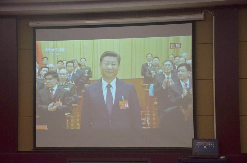 10月18日上午9时,中国共产党第十九次全国代表大会在北京人民大会堂隆重开幕。为学习党的十九大精神,英国正版365官方网站组织部分师生在英国正版365官方网站二楼会议室集体观看大会开幕会,聆听习近平总书记在大会上所作重要报告。