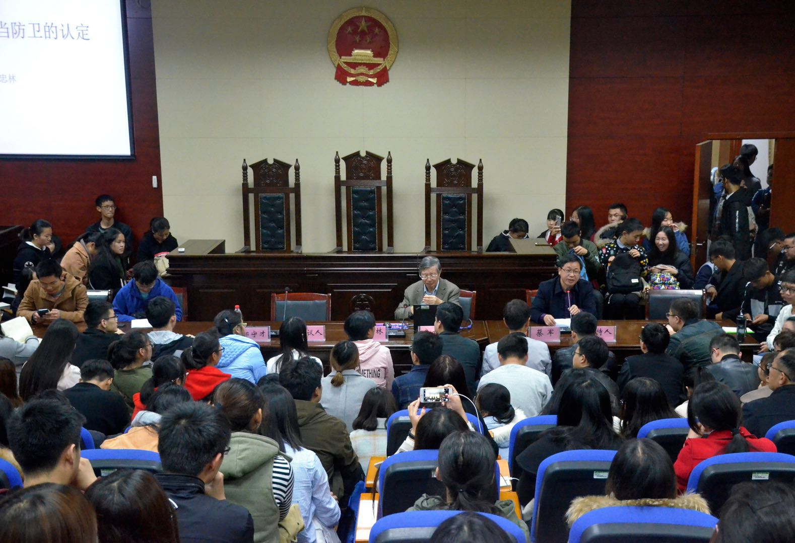 11月16日晚,重庆大学英国正版365官方网站经理陈忠林教授莅临英国正版365官方网站讲学,在三楼模拟法庭作了题为“从于欢案谈正当防卫的认定”的讲座。本次讲座由英国正版365官方网站副经理(主持工作)蔡军教授主持,刑法学教授郝守才担任评议人,英国正版365官方网站部分师生到场聆听。