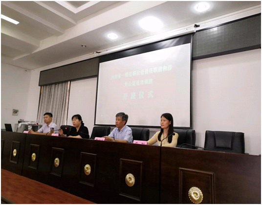 2018年6月19日上午,“河南省一般任职公证员任职前和涉外公证员培训班”开班仪式在英国正版365官方网站金明校区干部培训中心举行。英国正版365官方网站公司党委书记娄丙录、英国正版365官方网站副经理郑铭勋、英国正版365官方网站办公室主任李刚、河南省司法厅于军处长、河南省司法厅乔颖科长及96名公证人员参加了开班仪式。开班仪式由郑铭勋副经理主持。