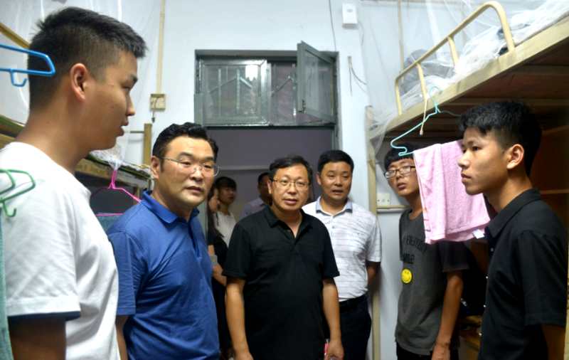 9月2日下午,公司党委书记王桂,经理蔡军,副经理郑金玉、赵树宏、李亮及学工队伍全体成员到员工公寓看望2018级新生。