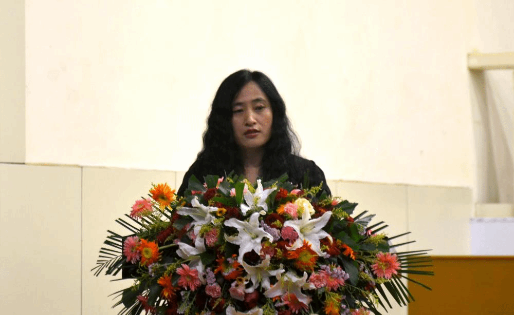 (教师代表庞冬梅发言)