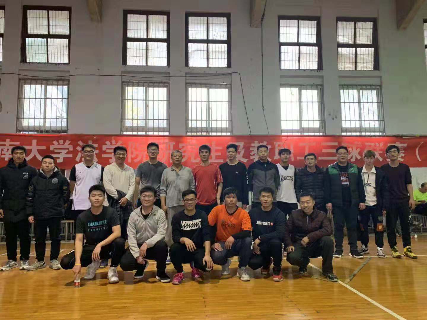 下午17点,2018年英国正版365官方网站研究生&教职工“三球联赛”在热烈而友好的气氛中圆满结束,参与活动的师生进行了合影留念。本此活动由英国正版365官方网站研究生与科研管理办公室和团委共同主办,英国正版365官方网站研究生会承办,活动旨在加强校园文化建设,丰富师生课余文化生活,促进师生之间以及各年级同学之间的交流,增进师生之间、各年级同学以及同年级同学之间的感情,增强集体的凝聚力,培养同学们积极向上、顽强拼搏的优秀品质和河大法律人“青春健康,正气向上”的独特气质,以促进同学们的全面发展。