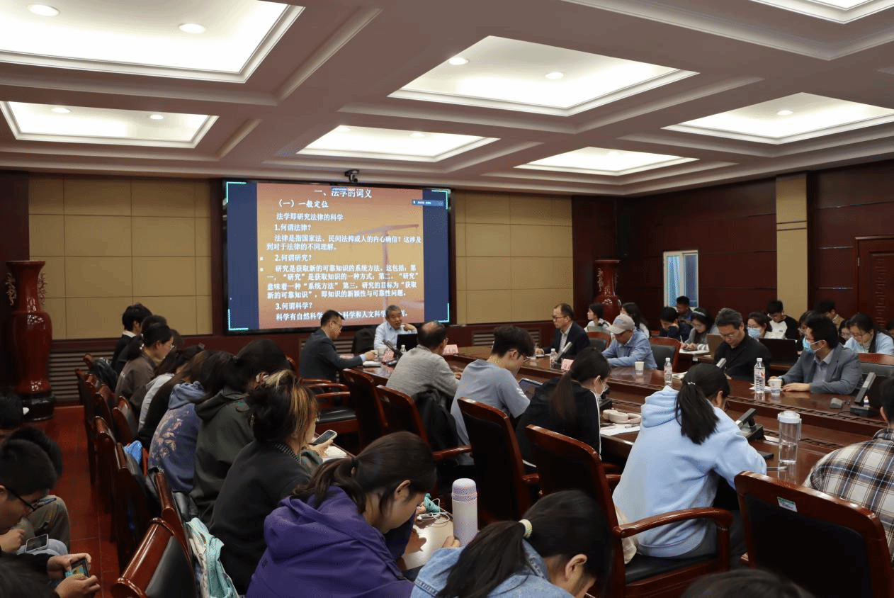 讲座伊始,胡玉鸿教授从法学的“一般定位”切入,通过法学概念的词汇拆解系统说明了法学的研究方法。胡玉鸿教授认为,法学即研究法律的科学,结合“何谓法律?”“何谓研究?”“何谓科学”三个问题梳理,可知法学兼具社会科学的实证性与人文科学的价值性,法学研究需兼具社会科学与人文科学的视角。在追溯西方法学语源时,胡玉鸿教授引用《法学阶梯》与奥斯丁的经典定义,强调法学作为“正义之学”的本质,法律在调整陌生人的相互关系中发挥着独特功能。谈及法学的研究对象,胡玉鸿教授提出“人是法学研究的逻辑起点”的观点,随后他阐释了“法律人”作为核心假定的意义,即对法律实践中人类行为的抽象归纳,并以国家与个人的法律实践为主线,分析了法律问题的本质,如法律的客观性、正义的内涵、法官角色等问题。在法学的分科研究中,胡玉鸿教授主张将法学分为理论法学(包括法学学、法哲学、法理学)、经验法学(包括法人类学、法律史学、法社会学、比较法学)和应用法学(即部门法学),系统梳理了各分支的研究范畴与方法论特征。最后,胡玉鸿教授从法学方法、法律原理、法律知识、法律技术四个维度展开对法学知识体系的阐述,指出法学方法需兼顾理想法与实在法研究、法律原理聚焦法律的本质与发展规律、法律知识侧重概念与制度解析、法律技术则服务于裁判的正当性论证,应体现法学“经世致用”的学科特质。