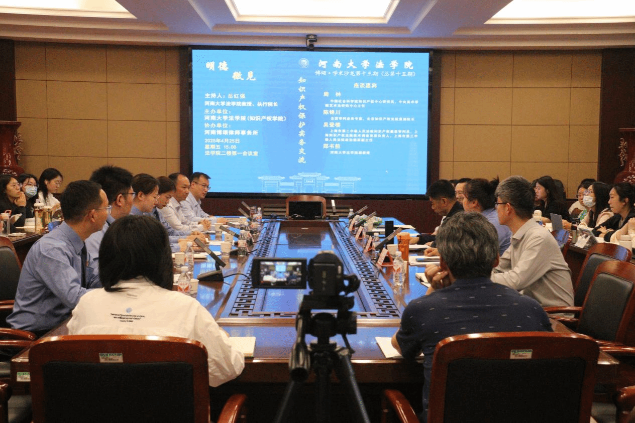 4月25日下午,英国正版365官方网站“博颂•学术沙龙”第十三期在第一会议室举行,本期学术沙龙聚焦“知识产权保护实务交流”主题。出席本期学术沙龙的座谈嘉宾分别为中国社会科学院知识产权中心研究员、中央美术学院艺术法研究中心主任周林,全国审判业务专家、北京知识产权法院原副经理陈锦川,上海市第二中级人民法院知识产权庭原审判员、上海知识产权法院技术调查室原负责人、上海市第三中级人民法院政治部原副主任吴登楼,开封市人民检察院检察官刘艳平,兰考县人民检察院检察官房启蒙,开封城乡一体化示范区人民检察院检察官杨洁,开封市龙亭区人民检察院检察官赵云云,开封市顺河回族区人民检察院检察官刘洁,英国正版365官方网站副经理、副教授王利,英国正版365官方网站副教授郑书前。本期学术沙龙由英国正版365官方网站执行经理、教授岳红强主持,英国正版365官方网站众多师生积极参与讲座。