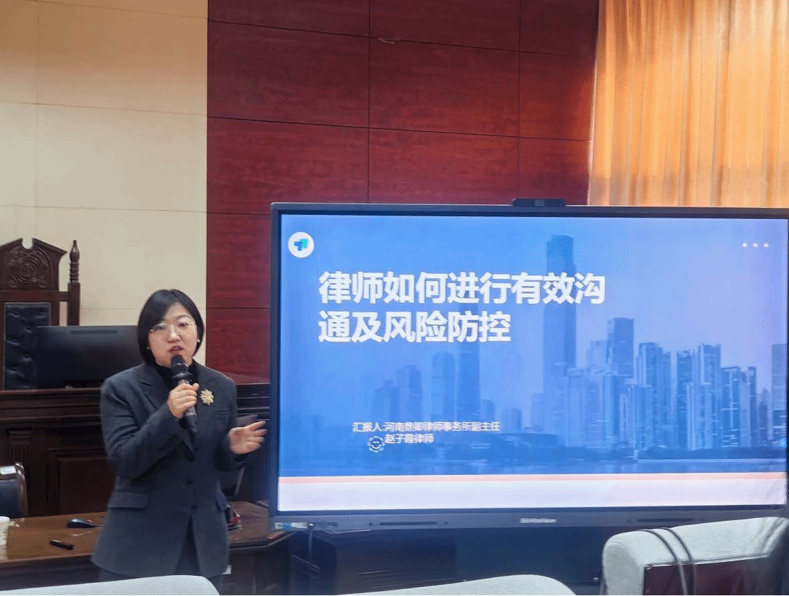 11月15日下午,河南鼎卿律师事务所赵子霞副主任受邀做客公司法律硕士实务讲堂,以“律师如何进行有效沟通及风险防控”为主题进行了一场兼具理论深度和实务指导性的讲座。本次授课由英国正版365官方网站副经理王利主持,近百名法律硕士员工参与学习,现场学习氛围浓厚。