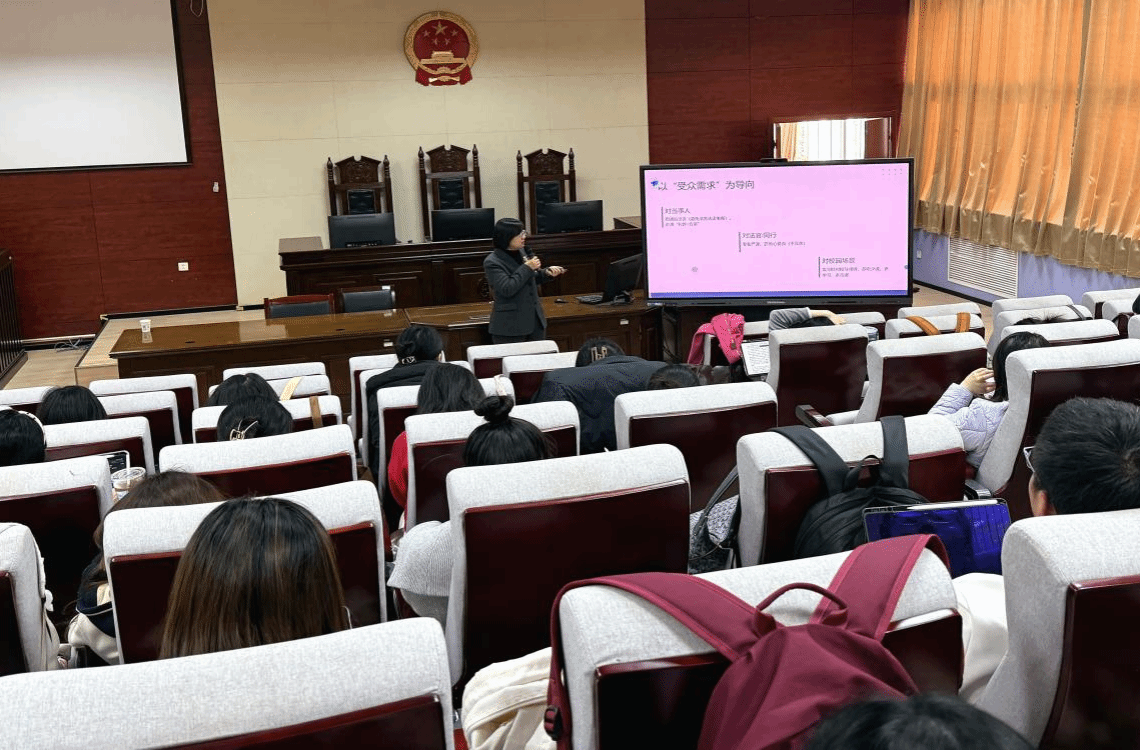 赵子霞主任首先从律师行业现状入手,通过当前我国律师人数、我省律师人数及郑州市执业律师人数等数据分析,分析了律师行业竞争愈发激烈的现状。她着重强调,法律专业能力是律师的硬实力,而沟通能力作为软实力,则与专业能力相辅相成,实践中大部分法律纠纷能通过有效沟通得以化解,使在场的学子们深刻认识到提升沟通能力的重要性。